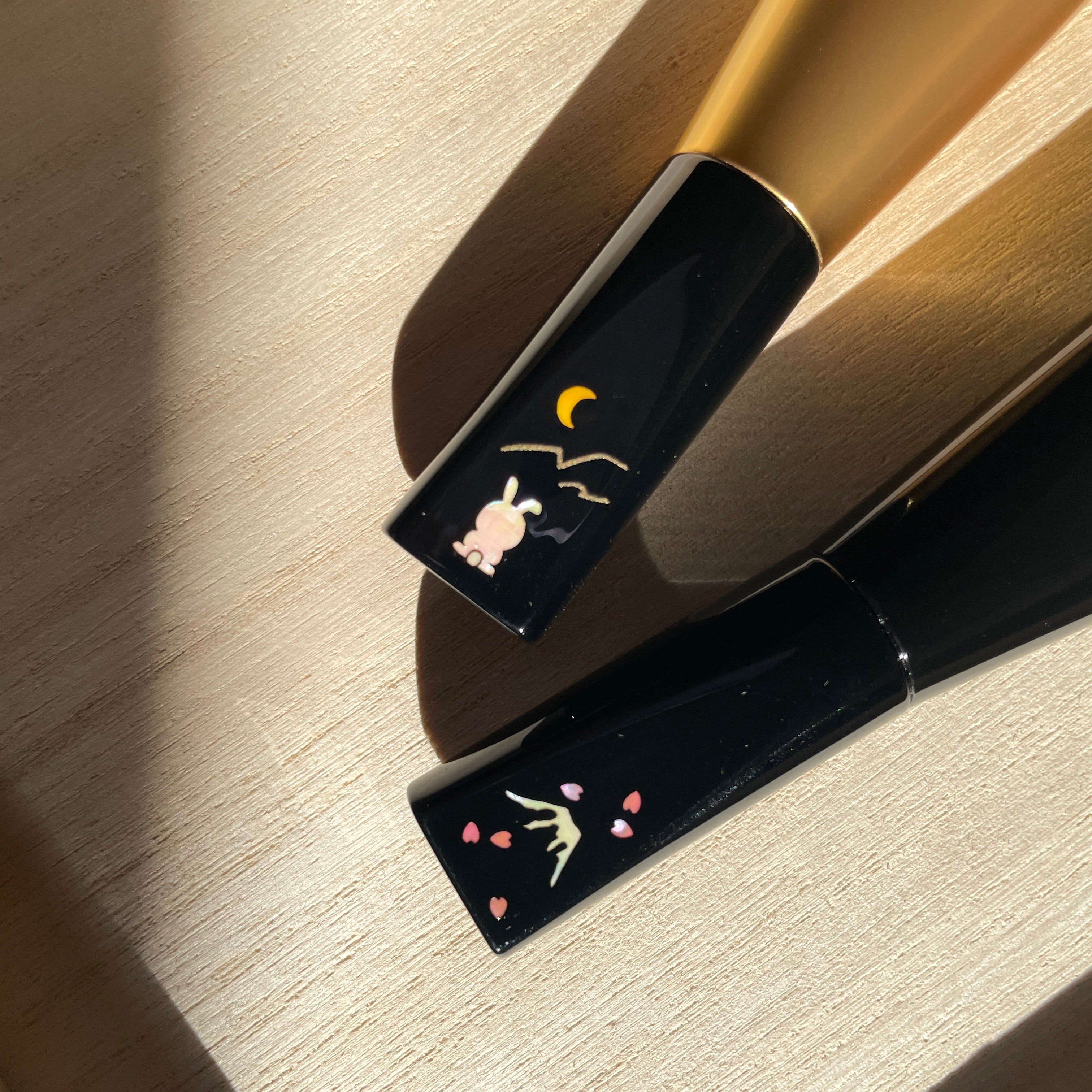 The finest and softest goat hair gives an excellent feeling and texture. Perfect shape for bronzer and powder as well! The Wajima-Nuri handle by master Hiroshi enhances the luxury of this piece. I would say the bristle is very close to Gokujyo, so this is one of the must buy pieces for fude collectors!