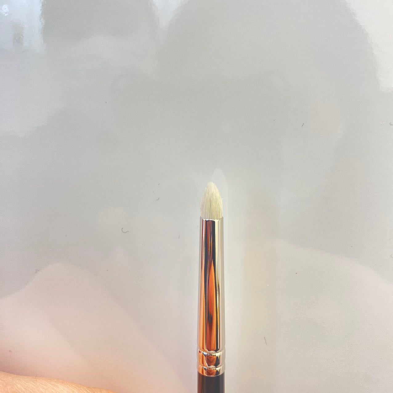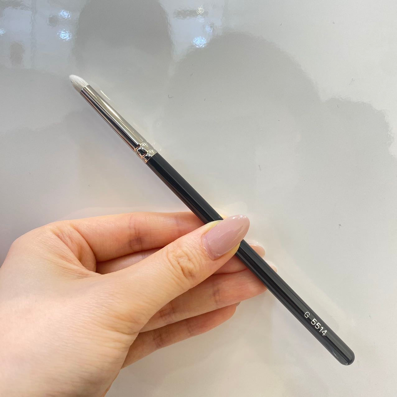 This popular eyeshadow brush is convenient for creating relatively thick lines along the lash line and for blending liquid eyeliner. Instead of drawing the line in one go, use the shape of the brush tip and apply it with a light touch, gradually gliding it for a blended, natural line. A final touch after using liquid eyeliner results in a very natural eye look.