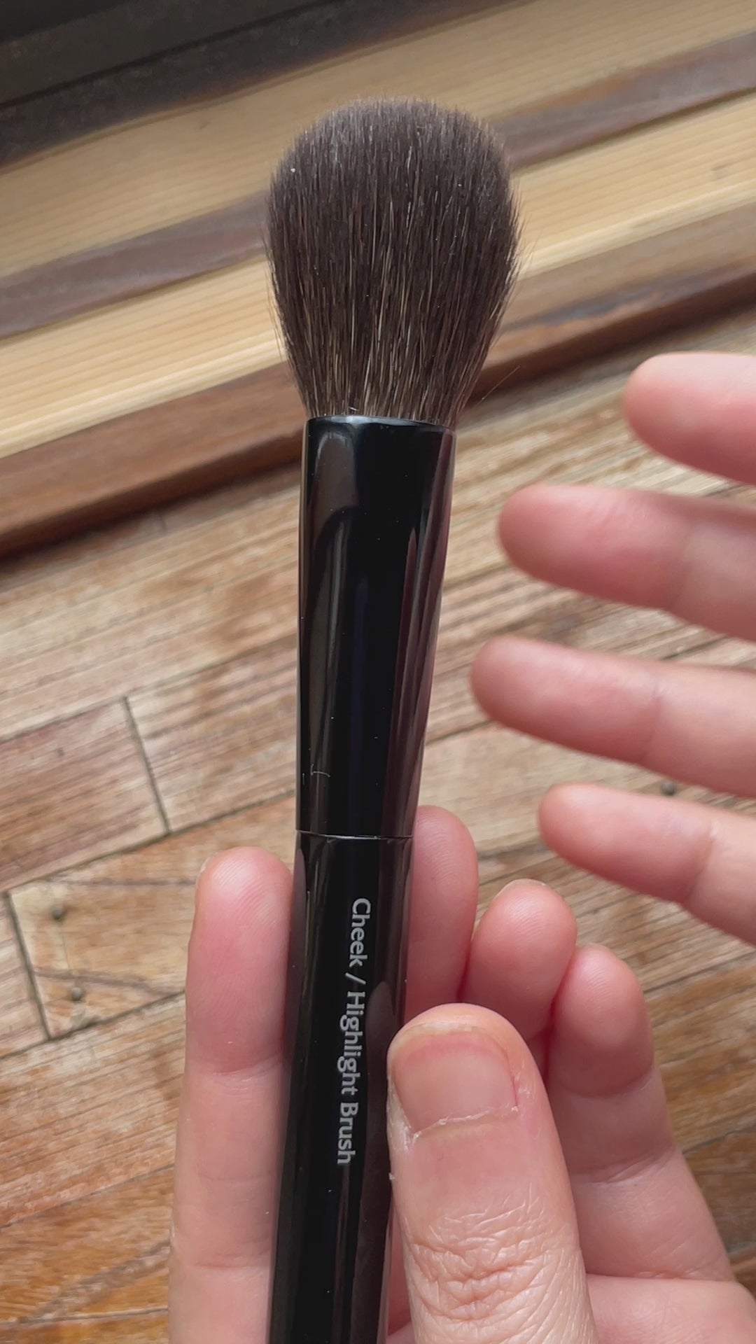 Made from the highest quality 100% gray squirrel hair, this cheek brush features a natural and soft color payoff with a moderate density and resilient tapered tip. It can be used for a natural and soft application of blush and also doubles as a highlighter brush.